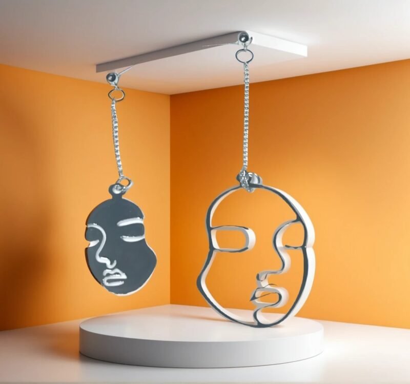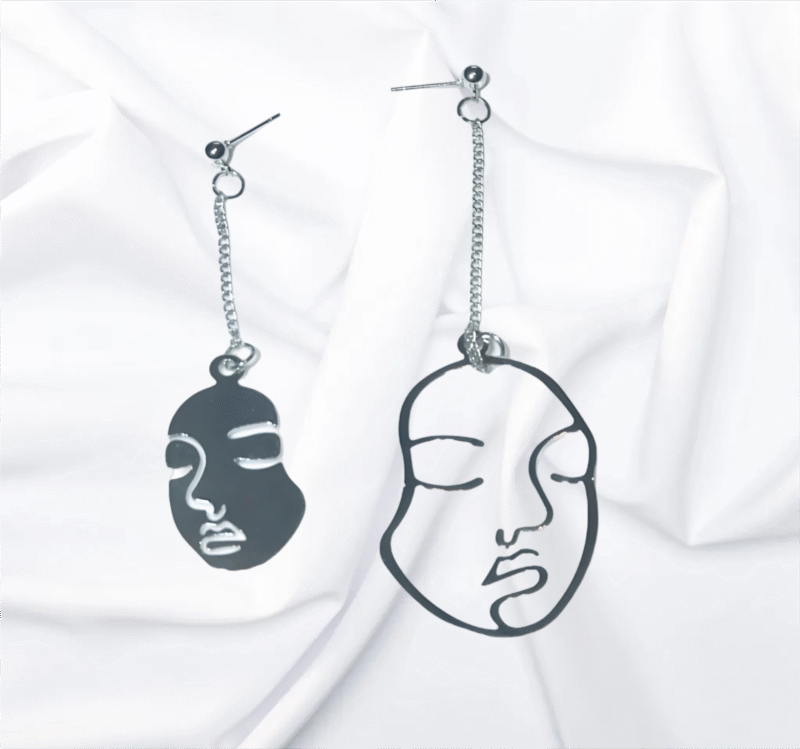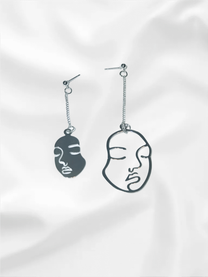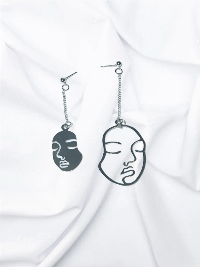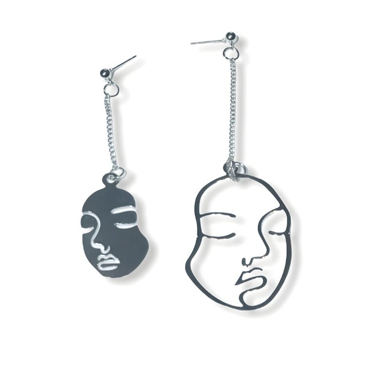 Artistic Silver Face Portrait Earrings