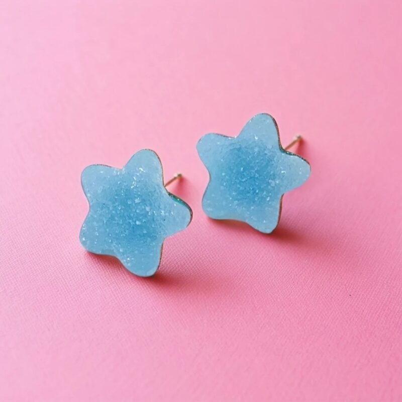 Blue Candy Cute Kawaii Soft Ombré Sugar Gummy Star Stainless Stud Earrings! Handmade by me. This item was made 9/24/20 by hand by me! Stainless steel stud earring backs. One Pair as shown. Trending sugar gummy resin stars!