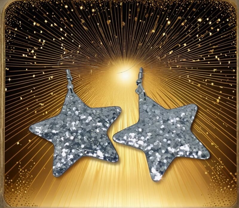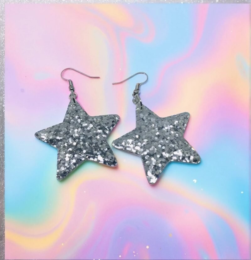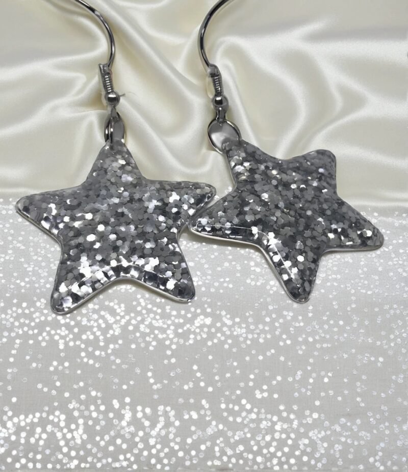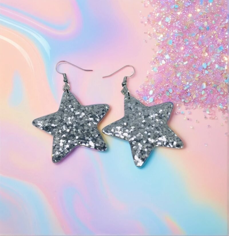 Glitter Confetti Silver Resin Star Handmade Earrings