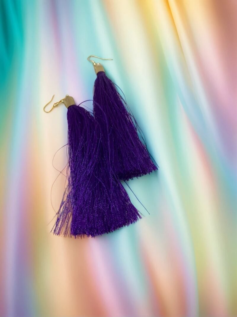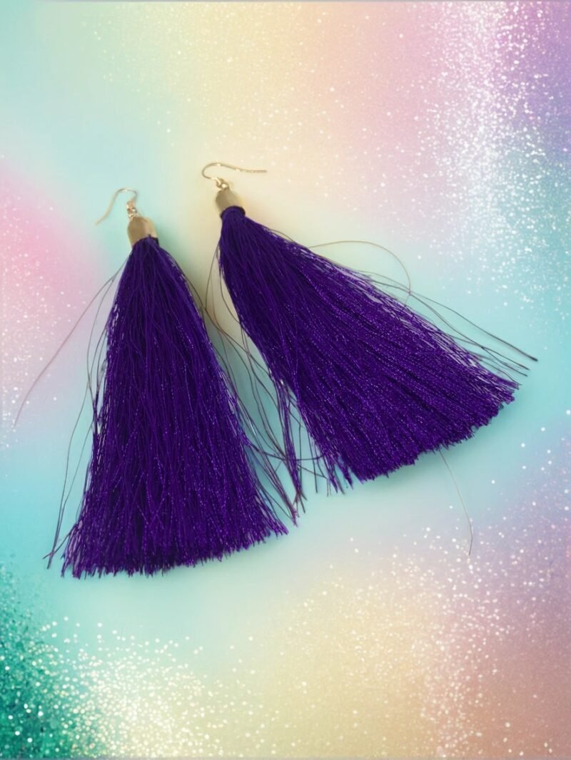 Tassel Drop Style Earrings in Gorgeous Deep Dark Purple. Silky Gorgeous handmade Tassel earrings! Crazy Stylish and trendy! Tassel earrings are fashion must have! Includes one pair deep purple tassel earrings.