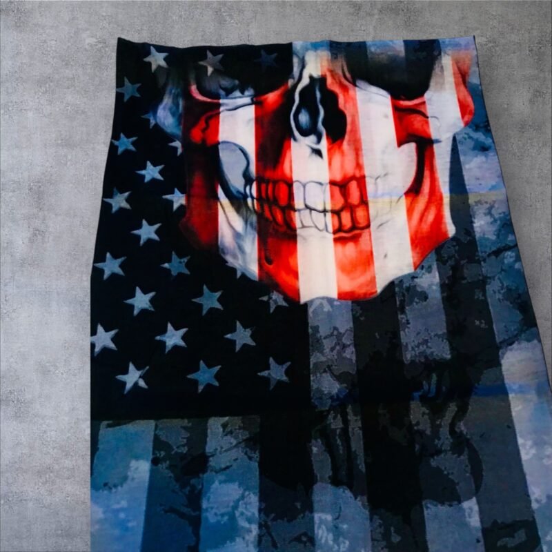 Skull Stars & Striped 16 n 1 Neck Gaiter Face Cover Dust Mask Biker Rag